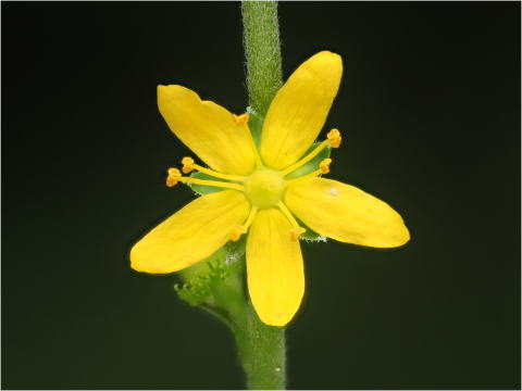 キンミズヒキでは雄しべが8〜15本と多く、花の中央部が雄しべでモジャモジャした