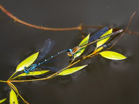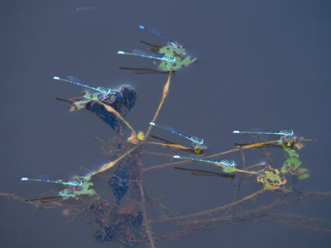 オスは水生植物の上などで簡単に見つけられますが、単独のメスはあまり
