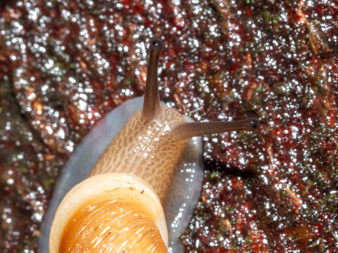 殻の表面にコケが生えているものもよく見られます。